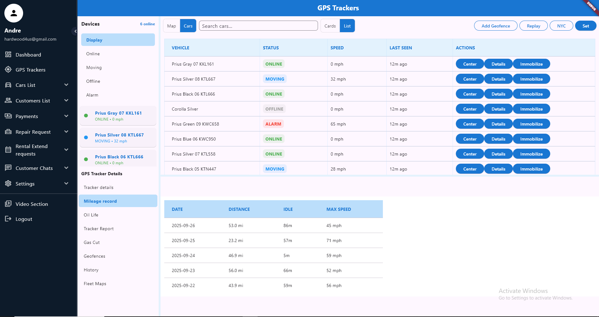 Designed the GPS Tracker dashboard and integrated a mileage record feature for enhanced tracking and reporting