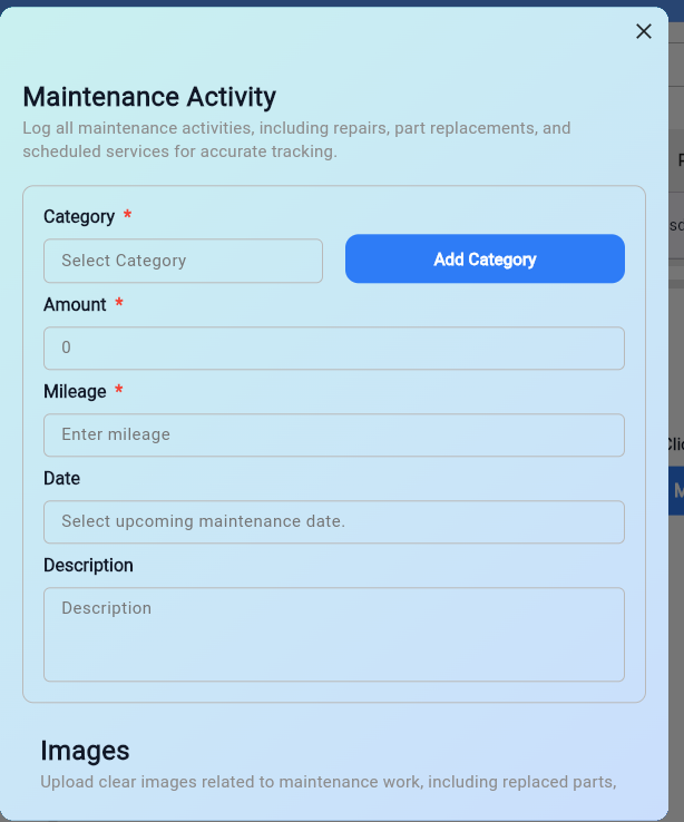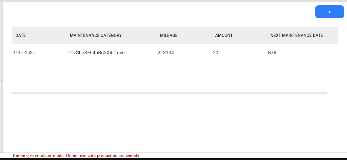 The Maintenance section has been added, and maintenance records are displayed. The functionality to add, edit, and delete maintenance categories is completed.