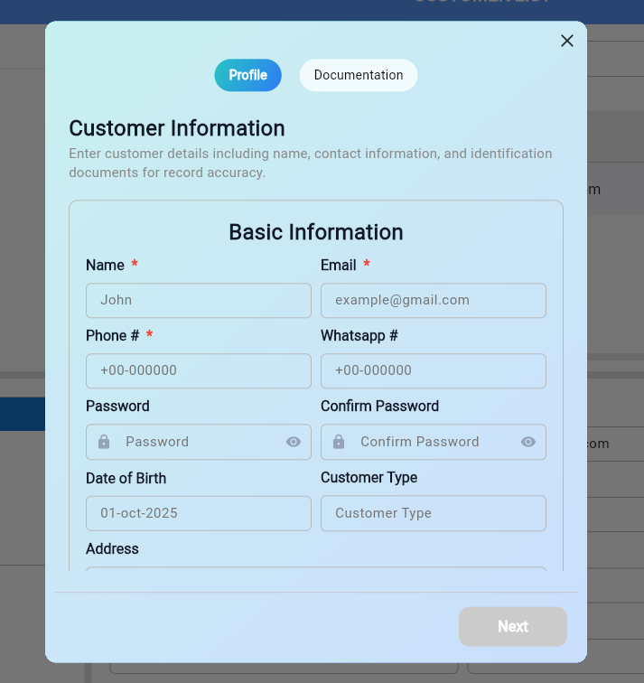 Customer are show properly with search, add customer section(customer credentials are not ready)