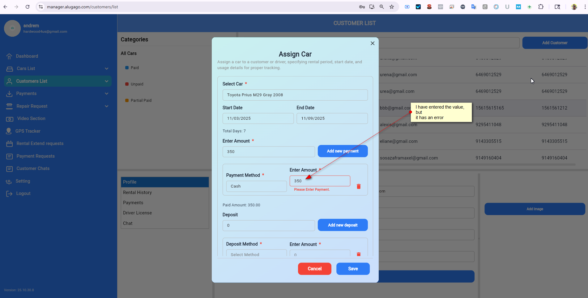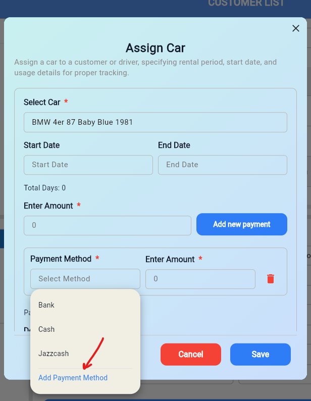 Add the Payments Details of Assign Car to the database.