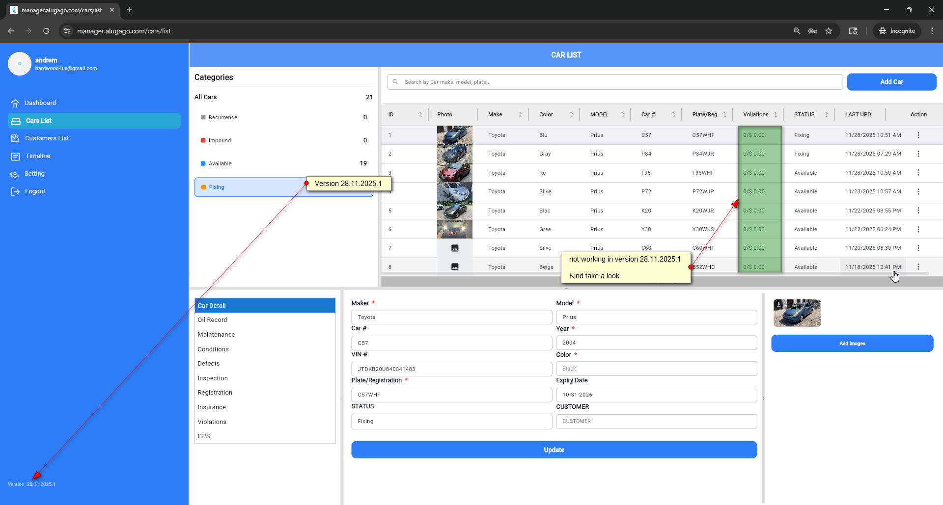 Add voilation Column in Car list Screen