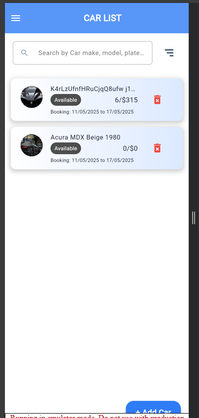 Create Car list Mobile view to show list of cars