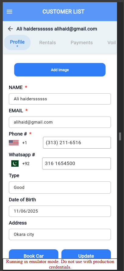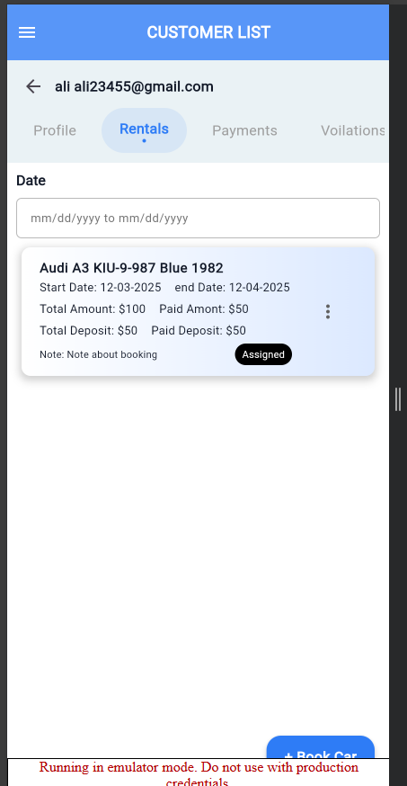 Fix issue of customer list and Set Voilation tab of Customer listScreen