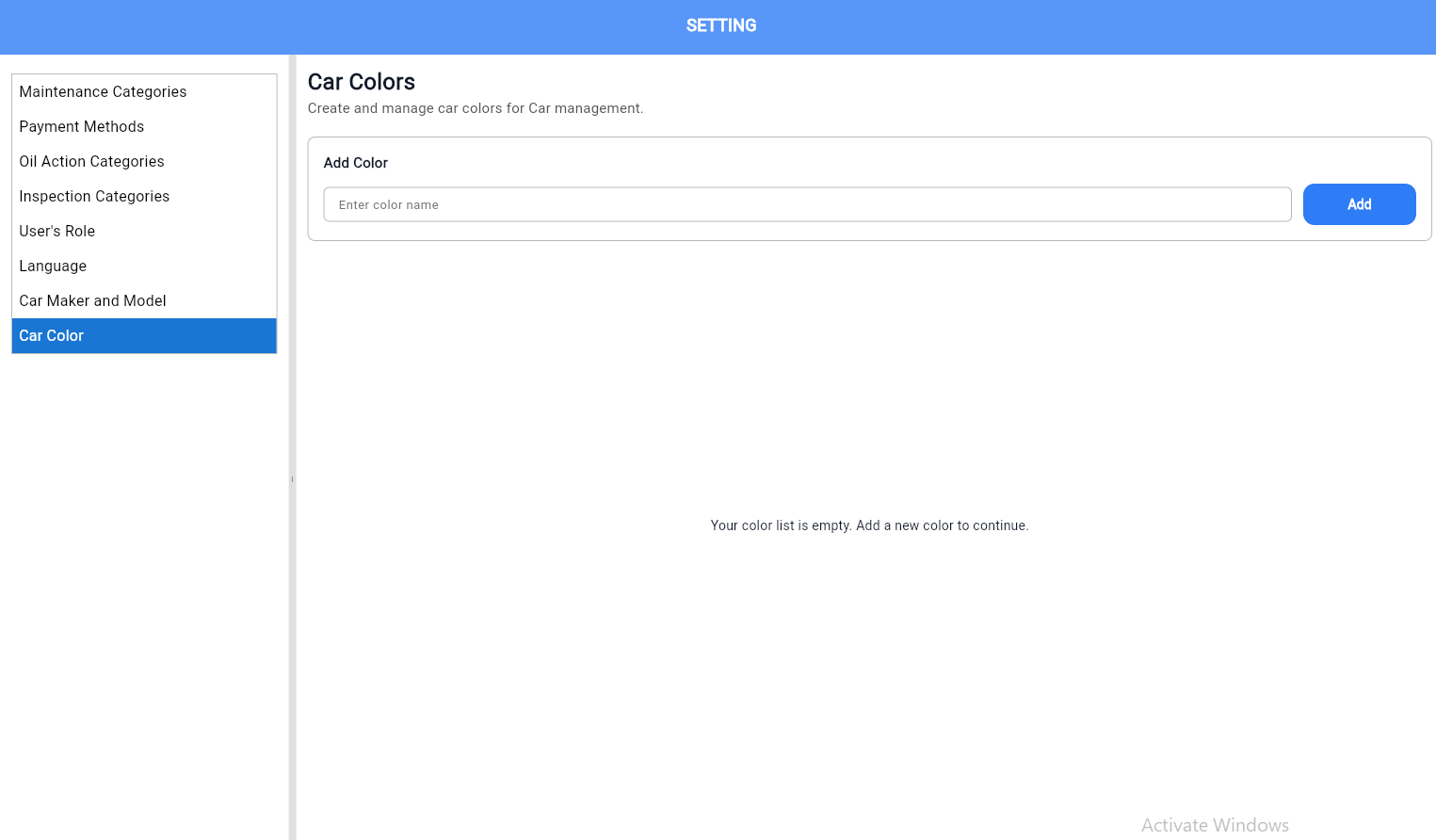 Create Car color section to add car colors