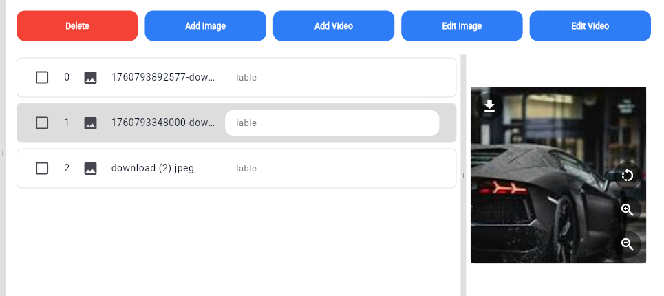 Complete Image section to view, add ,edit, delete video, image