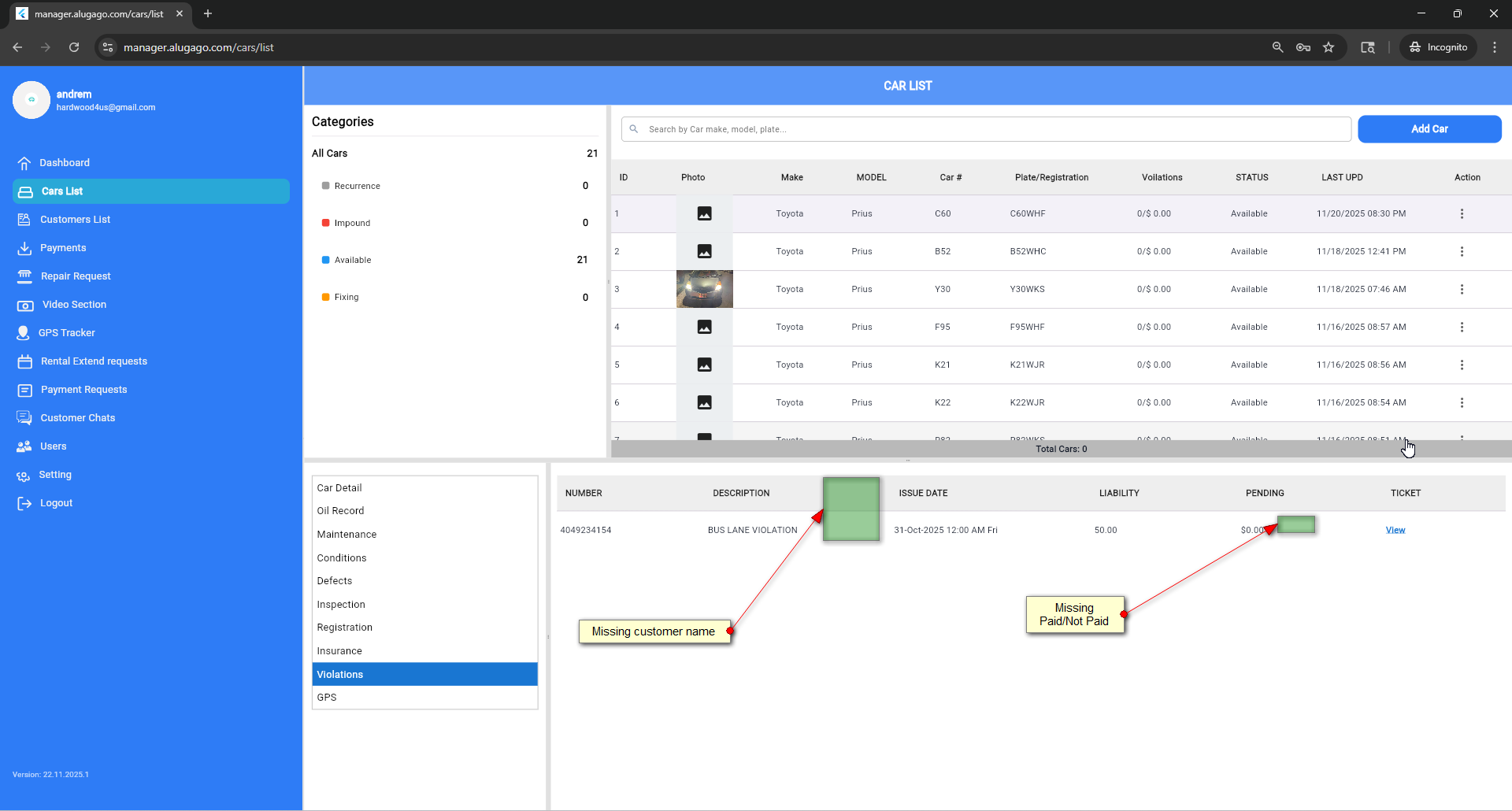 closedV 22/11/25 Missing Customer name, paid/not paid