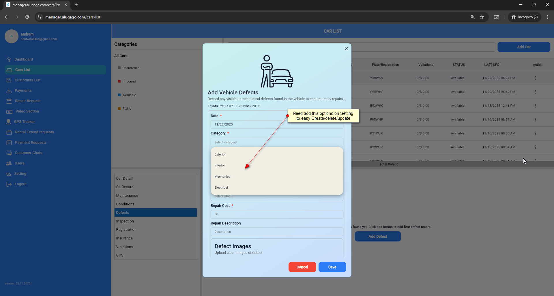 • Subject changed from Defects Categories need to be in setting to V 22/11/25 Defects Categories need to be in setting