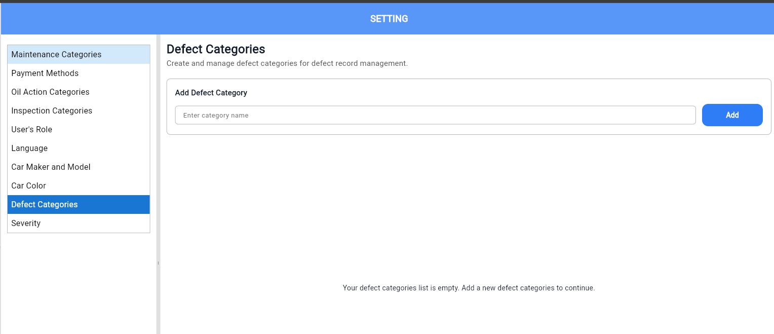 Create page to manage defect categories