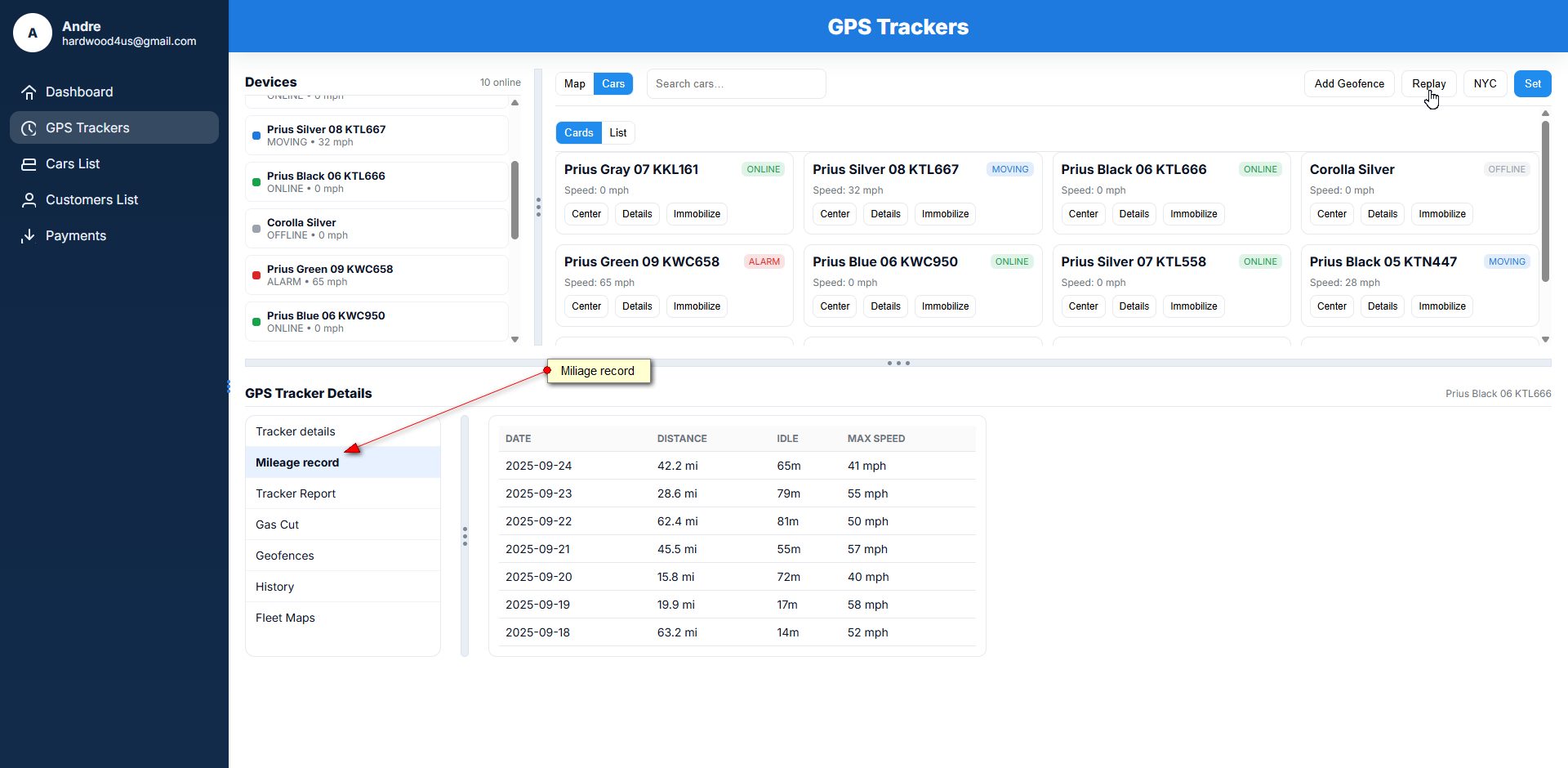 GPS Tracker Dashboard(Mileage record Feature).png
