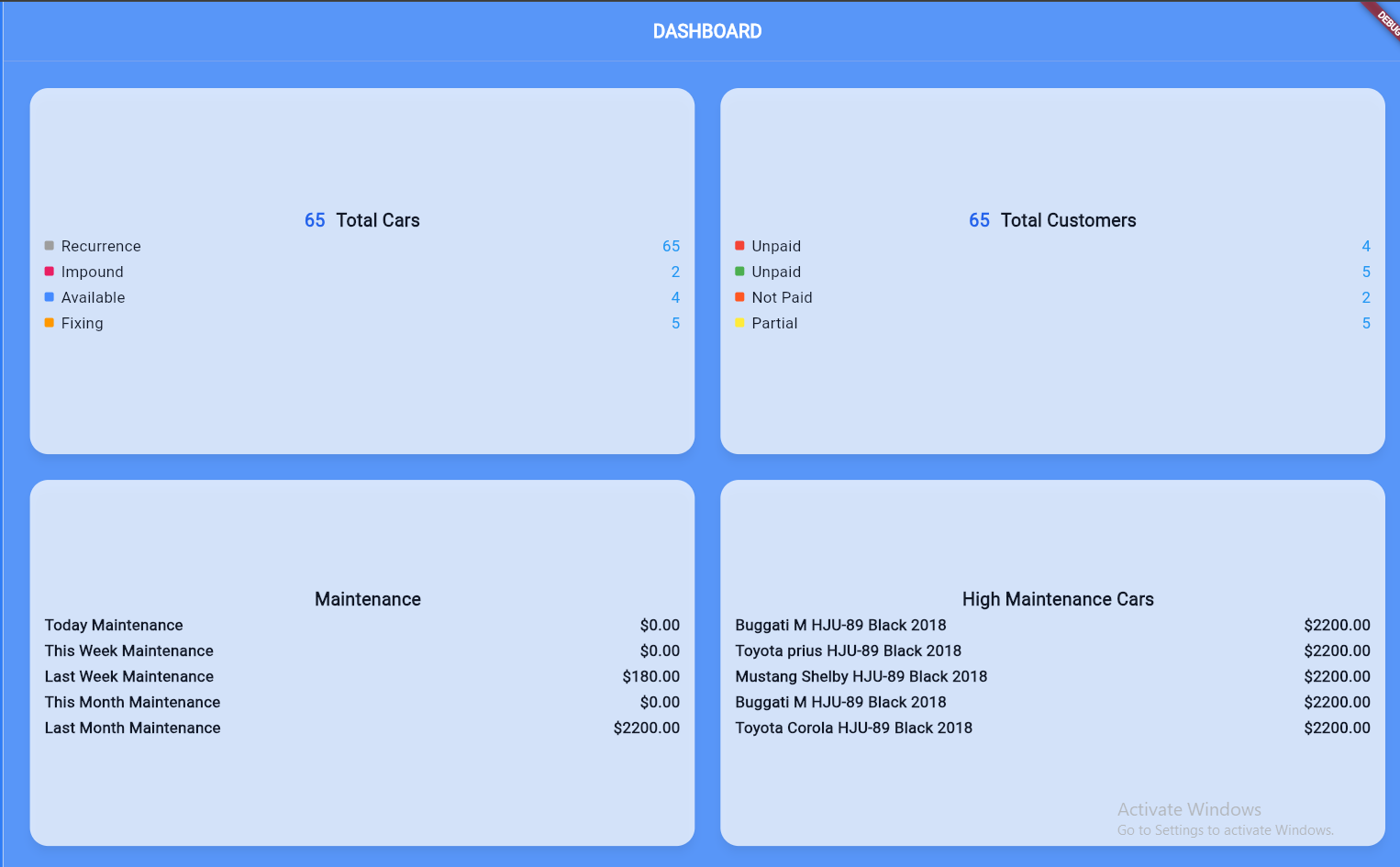 Dashboard page