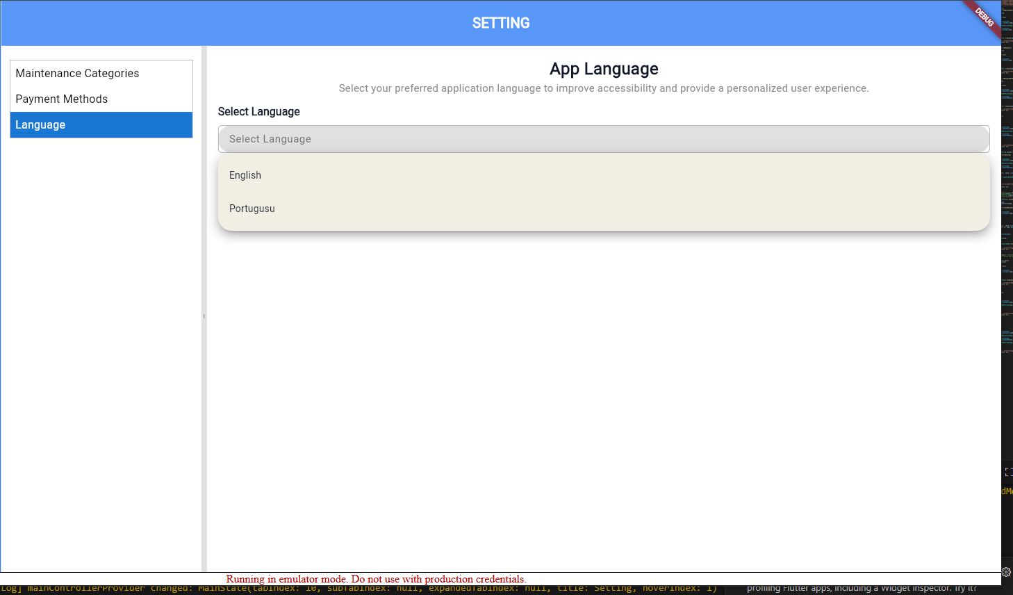 I will run the project and resolve all issues with dialogs and functional tabs related to the app's language settings.