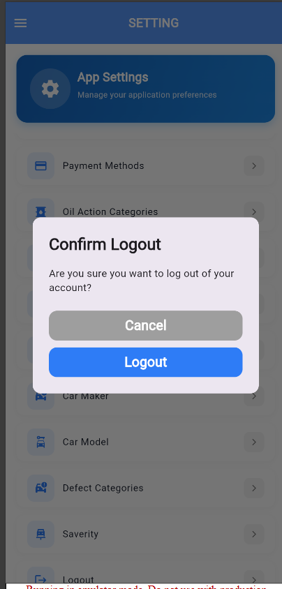 I will implement a responsive dialog design for the settings screen to display all modules on mobile and include a functional logout action.