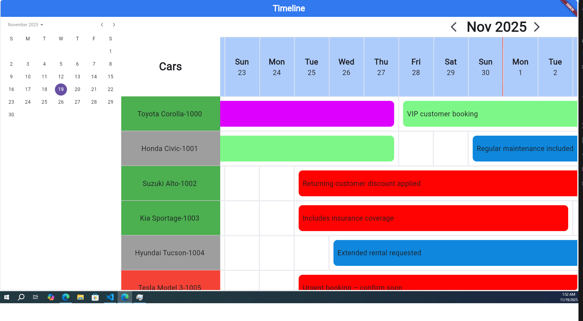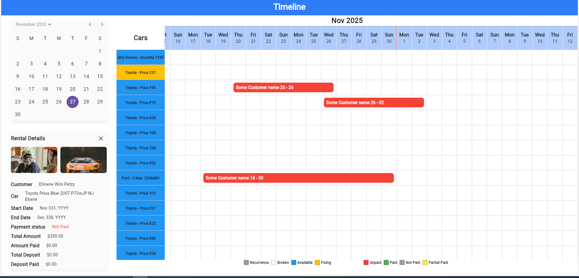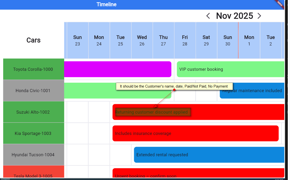 I implement an onTap function to display dialogs for car, customer, rental date, and payments, to the timeline.