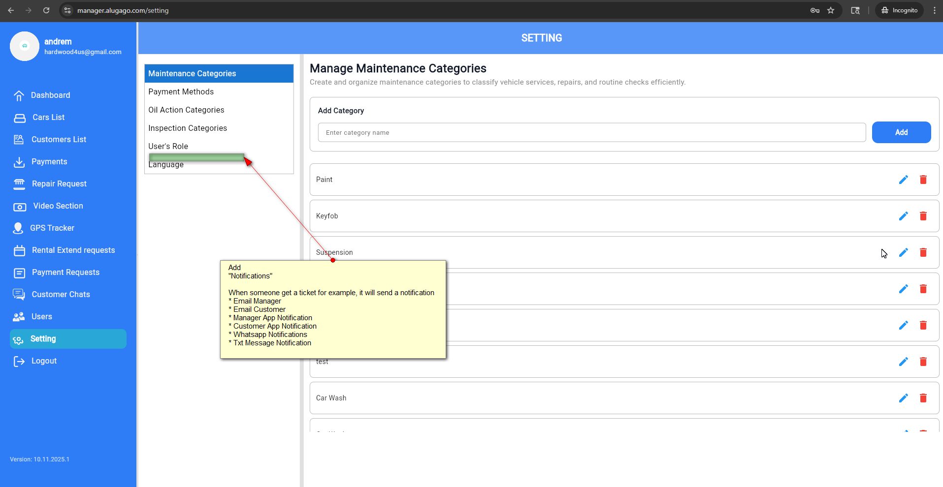* Customer App Notification